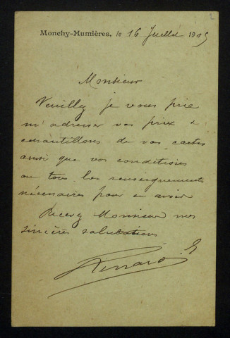7 J 47 Correspondance d'Achille Millien à Léon Gautheron, Francis et Emile Guyonnet (membres du Groupe d'émulation artistique du Nivernais) (1920-1926).