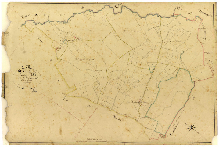 Dun-sur-Grandry, cadastre ancien : plan parcellaire de la section B dite de Creuseverne, feuille 2