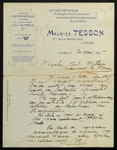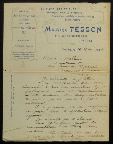 TESSON (Maurice), éditeur à Limoges : 2 lettres.