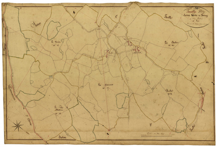 Echelle : 1/2000 (1 cm pour 20 m). Fléty est rattachée à Tazilly en l'an III, puis rétablie en commune distincte en 1853 par distraction d'une portion du territoire de Tazilly. Les sections A, B en totalité et C en partie de Tazilly sont transférées, sous la même dénomination, à Fléty.