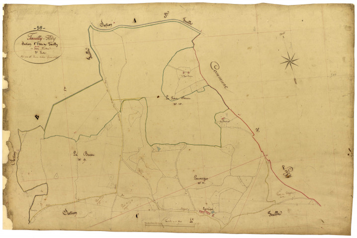 Echelle : 1/2000 (1 cm pour 20 m). Fléty est rattachée à Tazilly en l'an III, puis rétablie en commune distincte en 1853 par distraction d'une portion du territoire de Tazilly. Les sections A, B en totalité et C en partie de Tazilly sont transférées, sous la même dénomination, à Fléty.