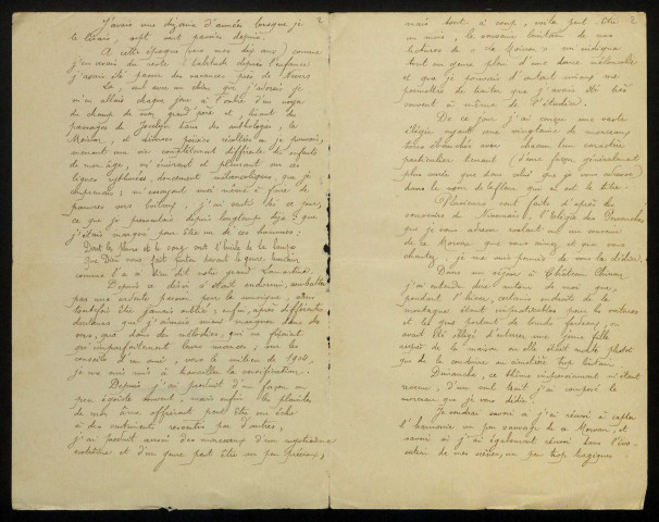 Ms 52 Poésie de Millien mise en musique : revues et extraits de revues, partitions et notes manuscrites, correspondance envoyée par l'abbé Thinot, André Chenal, Albert Arnaud, Fernand Masson, Paul Silva Hérard (1897-1923). Mélodies pastorales par Thalès Bernard (1857-1872). Brouillon d'accords de piano de Jean-Grégoire Pénavaire.