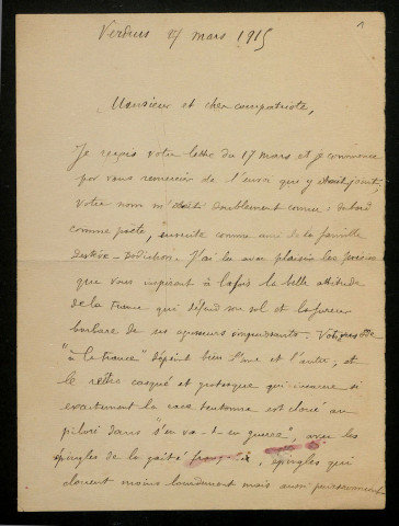 PACTON, militaire à Verdun-sur-Meuse (Meuse) : 1 lettre.