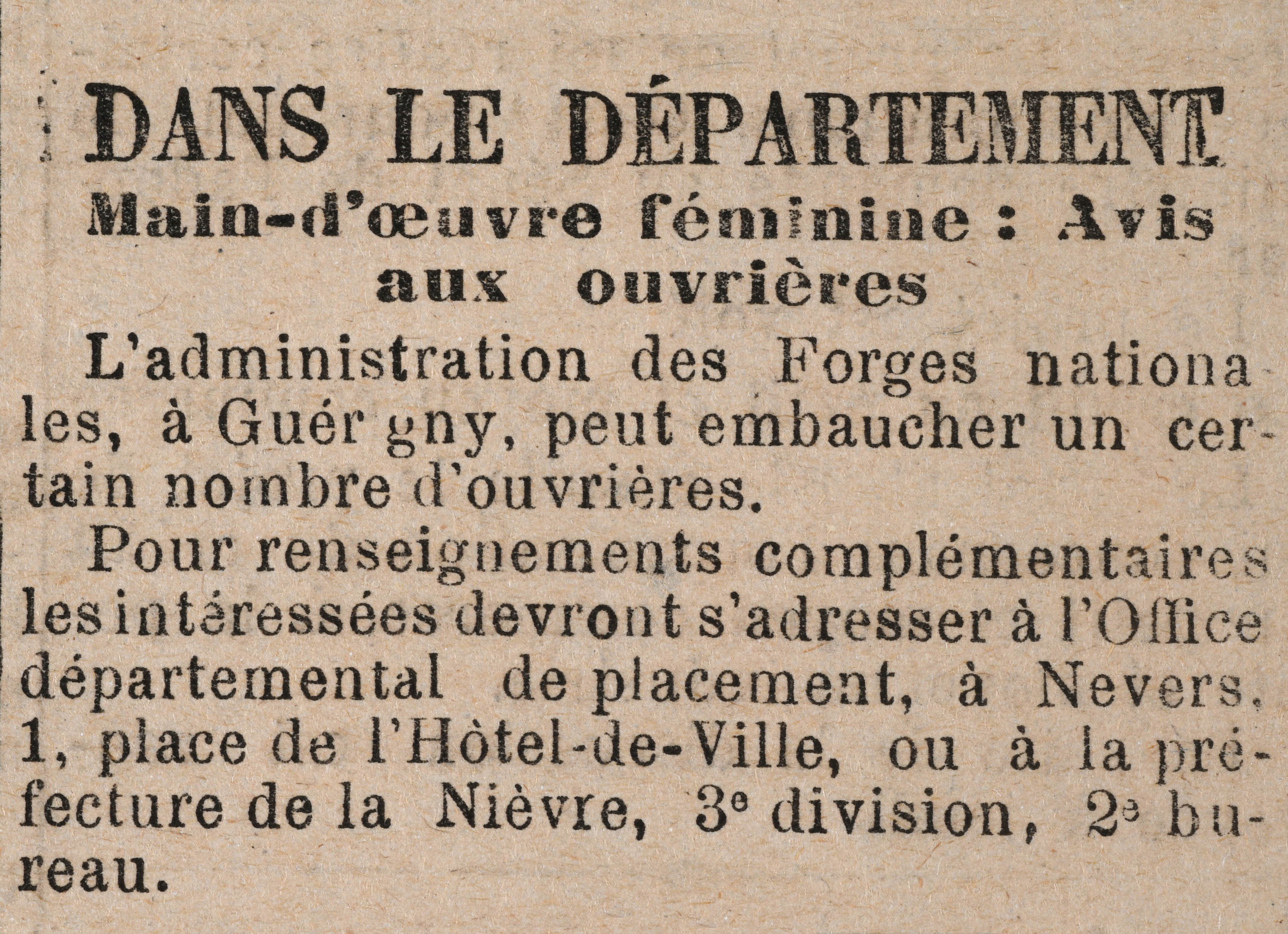 Affiche de l’Œuvre nivernaise du Tricot du soldat. 1Fi 311.